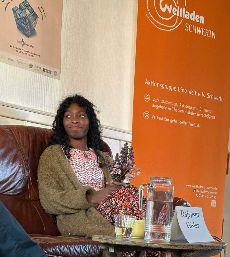 Bei der mittlerweile 5. Teestunde am So., 19.10.2025 war Rajepsut Gisler (37) zu Gast. Sie ist im Oman geboren und als schwarze Frau in einem Schweizer Bergdorf aufgewachsen.